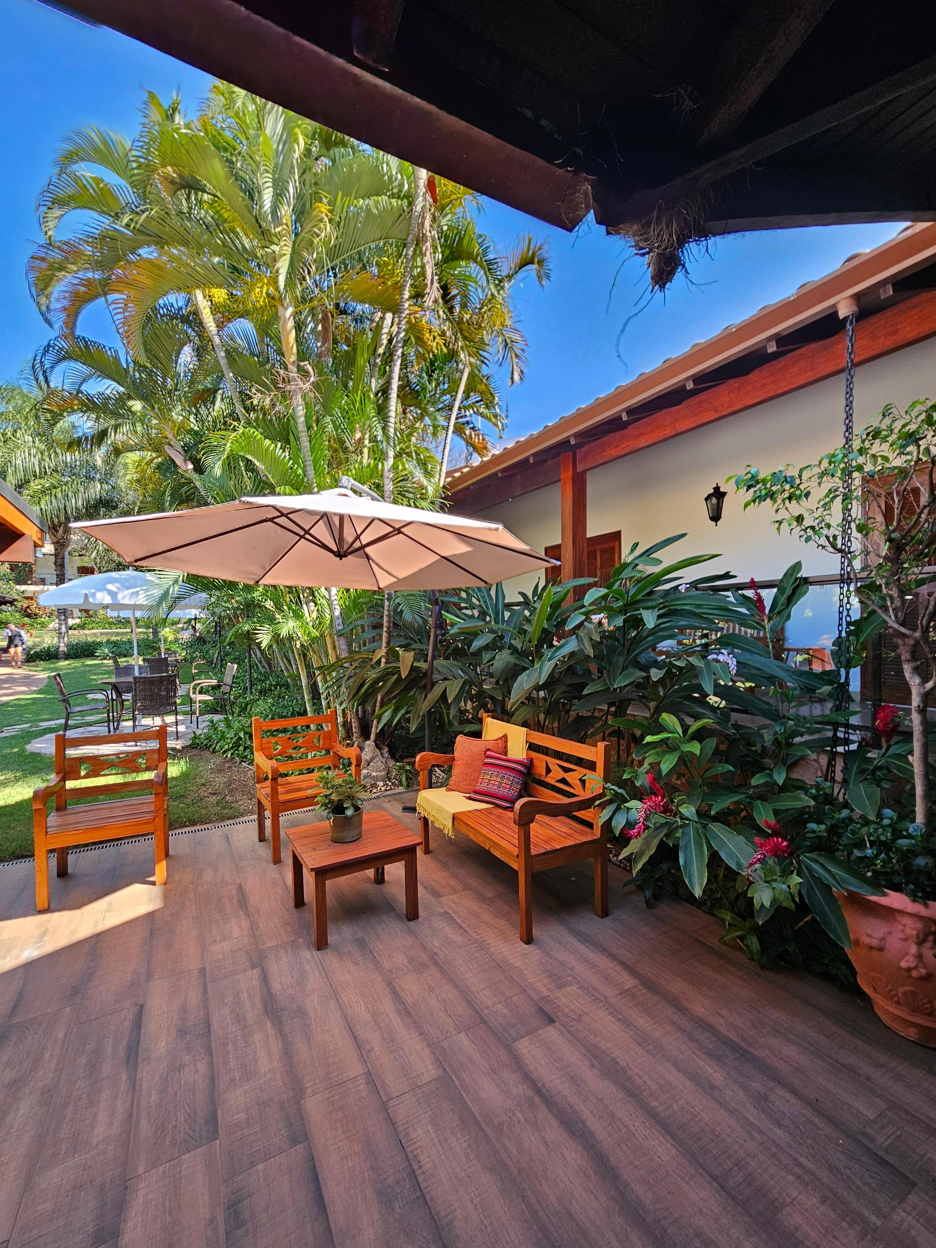 A pousada é excelente. Quarto amplo com vista a um lindo jardim. Espaços limpos, organizados, bom atendimento. Café gostoso e ainda tem o plus do café servido a tarde.